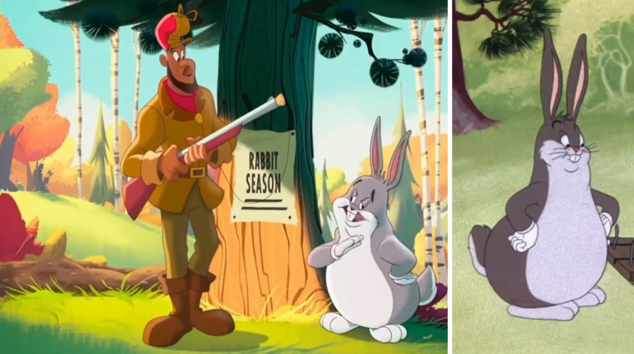 Суть мема: Багз, прекрасно осознающий, что он мультяшка, в одном из эпизодов «Весёлых мелодий» в 1941 году спародировал телосложение охотника Элмера Фадда. В 2017 году о нём вспомнили на Reddit, сделали обложку фейковой игры… В общем Чангус — термин, подразумевающий буквально «что угодно», применили к пухленькому Багзу, а создатели «Космического джема: Новое поколение» показали зрителям, что шарят в этом сегменте Интернет-культуры и тоже показали Биг Чангуса.