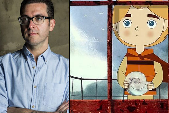 Слева — Томм Мур, справа — кадр с мальчиком Беном из мультфильма «Песнь Моря».