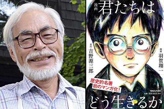 Слева — Хаяо Миядзаки, справа — обложка книги «Как поживаете?» Кэндзабуро Есино.
