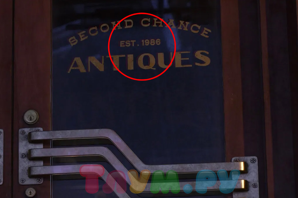 Когда Вуди попадает в городок, где проходит ярмарка, он замечает что-то знакомое в глубине антикварного магазина «Второй Шанс». Но нас, искателей пасхалок, интересует кое-что другое — надпись на двери лавочки. Под названием магазинчика красуется дата 1986 — это не только дата основания «Второго Шанса», но и дата начала работы самой студии Pixar.