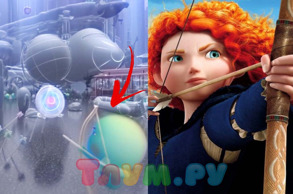 Студия продолжает ссылаться на свои же ранние проекты — так, в видеоролике об одном из помещений, где души ищут таланты, можно найти очень умелую душу-лучницу. Встречайте отсылку на Мериду из «Храброй сердцем», которая отлично стреляет из лука. Эта душа попадает в три мишени подряд — так же, как сделала Мерида, когда отправилась на соревнование своих же женихов.