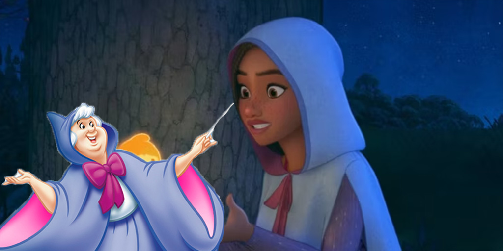 Всё потому, что в финале мультфильма Звезда дарит Аше импровизированную волшебную палочку. Также в этой сцене Аша надевает синюю мантию с капюшоном и фиолетовым бантом. Да-да, это конкретная визуальная параллель с феей-крёстной Золушки, а позже Звезда и сама дала Аше этот почётный титул. Значит ли это, что она — та самая фея, которая пришла к будущей диснеевской принцессе, или же Аша просто первая из рода Крёстных фей, остаётся предметом споров — мультфильм на этот вопрос не ответил. Надеемся, что второе, потому что тогда возмущение об изменении цвета кожи можно отложить.