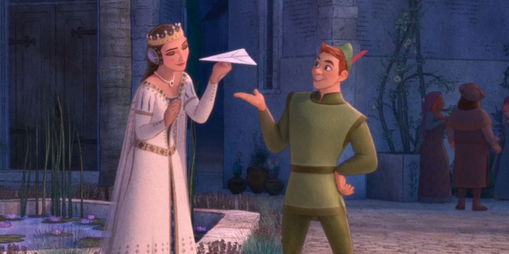 Ближе к концу в мультфильме появилась девушка, которая искала способ научиться летать как птица. Её мечту можно заметить ещё в сцене, где Аша попадает в кабинет с желаниями. То, как она представляет себя летящей по небу с вытянутыми руками, возможно, уже наводит зрителей на мысль — но финал раскрывает все карты. Эту героиню зовут Венди, и королева Амайя знакомит её с молодым человеком Питером, который «пытается изобрести способ летать». Уже видите отсылку? Если ещё нет, напомним — Питер одет во всё зелёное, с зелёными же леггинсами (или это колготки?), да и фирменная шляпа с пером присутствует.