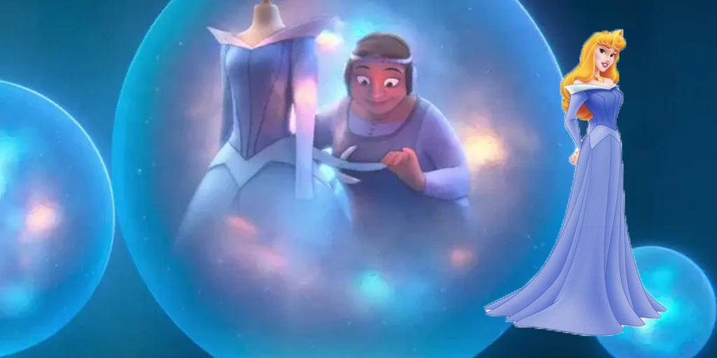 …Кто-то хочет делать для них наряды. Синее платье Авроры из «Спящей красавицы» можно увидеть в одном из желаний — в том, где девушка мечтает стать портнихой. Любопытно, кстати, что платье именно синее, хотя в мультфильме Аврора ходила в розовом — но синяя версия тоже существует, и она очень популярна!