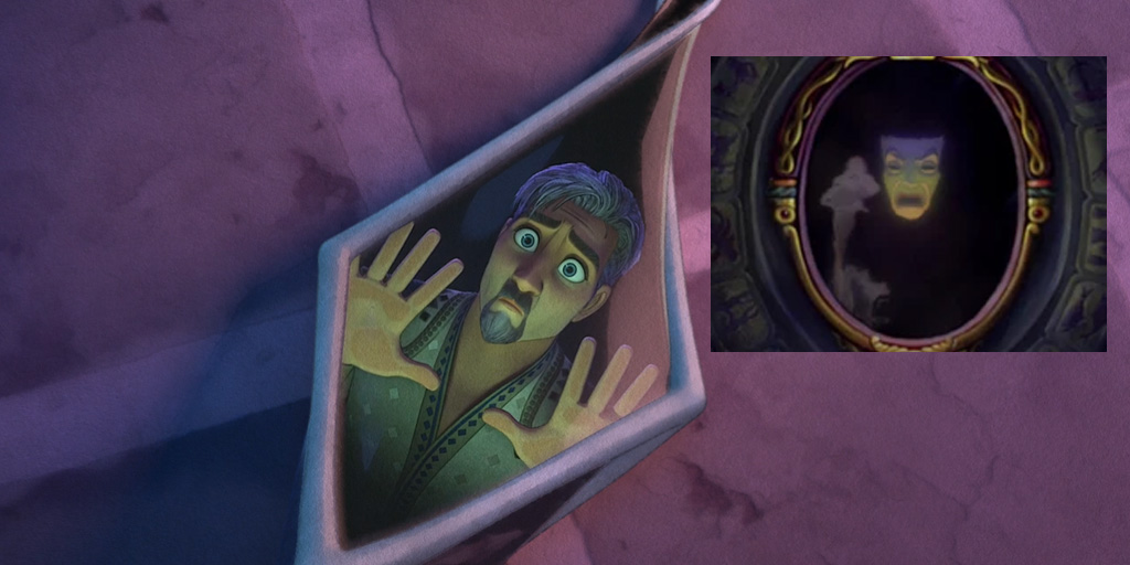 Магнифико — карикатурный диснеевский злодей с соответствующей манерой поведения. Когда жители Росаса загадывают коллективное желание в финальной битве с ним, Магнифико терпит поражение и затягивается в кончик своего посоха — в зеркало. Это отсылает нас к волшебному зеркалу в мультфильме «Белоснежка и семь гномов». Можно предположить, что именно в этот самый артефакт и превратился злодей. В ту самую секунду, когда Магнифико входит в зеркало, его лицо превращается в физиономию, которую вы наверняка отлично знаете. Привет Злой Королеве.