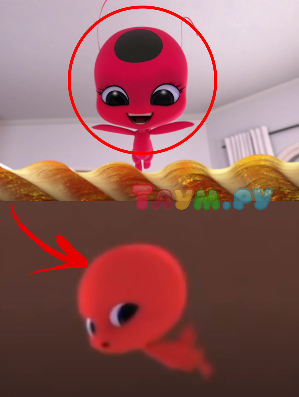 В эпизоде «Дорогая семья» мы потеряли ужасающее количество галет, которые съела обезумевшая Тикки. Пропало ещё кое-что очень важное — пятнышки у квами Леди Баг. Получается, теперь она символизирует не божью коровку, а просто какого-то жука?