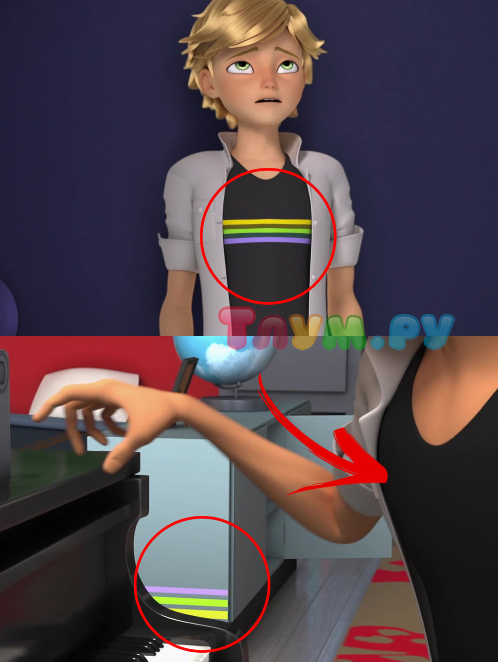 Фанаты часто жалуются, что персонажи в каждой серии носят одну и ту же одежду. Видимо аниматорам настолько это надоело, что они совершили ну очень нелепую ошибку. Так, когда в серии «Ложь» Адриан решает послушать музыку, с его футболки пропадают полоски… и оказываются на тумбочке. Это чудо или новое дизайнерское решение?
