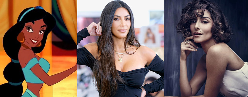 Восточная красота принцессы Жасмин проявляется в звезде реалити-шоу Ким Кардашьян и американской актрисе и фотомодели Некар Задеган.