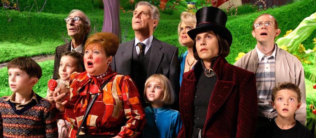 О чём: виртуозный кондитер-затворник разыгрывает 5 билетов, сулящих экскурсию на фабрику. Собираются 5 детей со своими провожатыми, зачитываются правила поведения и начинается погружений в шоколадно-малмеладно-молочный мир, где почти на каждом шагу настоящих пакостников ожидают опасности.