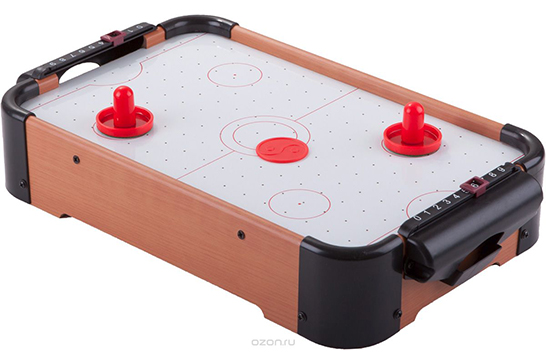 Для тех, кто хочет что-то попроще, чем куча крутящихся-вертящихся ручек, можно предложить поиграть в аэрохоккей. Тут у каждого есть своя бита, а единственная цель — загнать шайбу в ворота противника. Такие игры часто стоят в торговых центрах и всегда привлекают внимание малышей. Обрадуйте их тем, что в такую игру можно играть и дома.