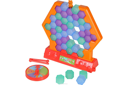 Еще одна игра на развитие терпения и ловкости рук — вытащите цветной блок из сот, да так, чтобы пчелка не упала! Игра отлично подойдет и для дома, и для улицы. Количество игроков может быть любым, главное, чтобы настроение было хорошее.