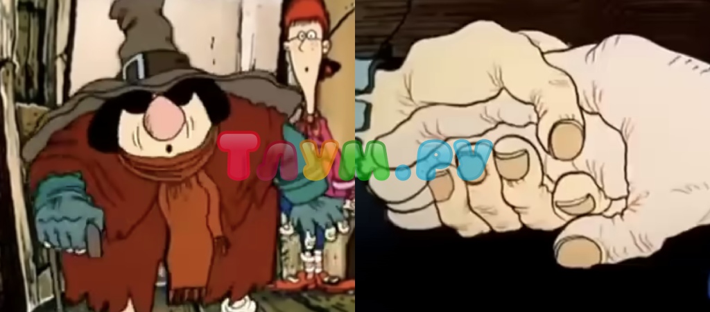 Кроме непоняток с ногами, у мультфильма существует и другая проблема, схожая с «Котом в сапогах» — пропадающие предметы одежды. Вот на Слепом Пью имеются перчатки, заметьте, даже обе, а вот кадр сменяется — герой протягивает вперёд свою руку, но та уже, почему-то, голая, никакого намёка на только что видневшуюся перчатку не осталось, даже крохотной ниточки нет.