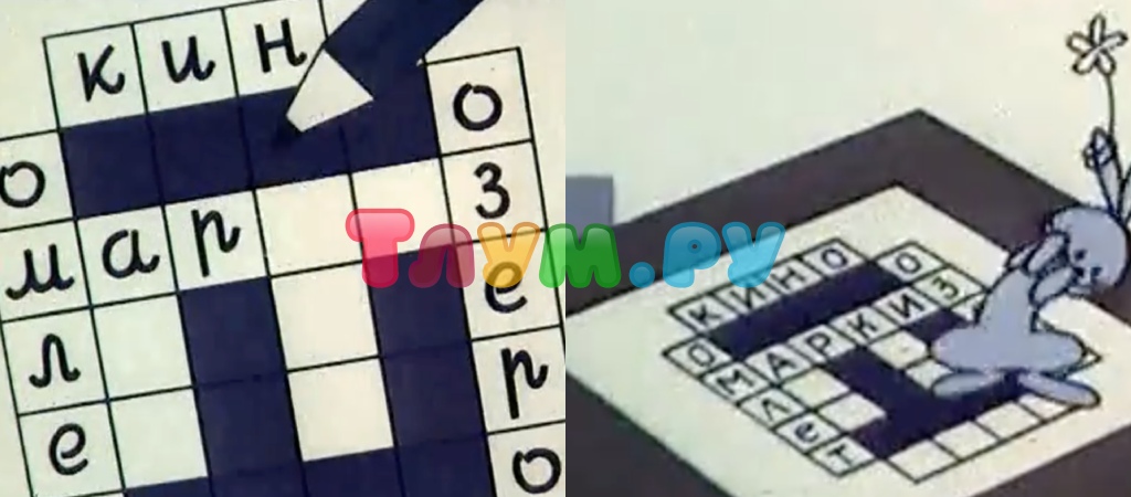 Этот ляп в мультфильме не единственный, второй более понятный в причине своего появления. Во-первых, происходит разгадывание кроссворда (они, кстати, появились в XIX веке, нет причин для удивления). Во-вторых, когда смена плана переходит на общий, буквы внезапно приобретают другую форму. Вы думаете, что это глупая и наивная ошибка аниматоров? Нет, раз уж план общий, то зрителю, так и быть, дают шанс продолжать осознавать, какие слова написаны — этим-то и обусловлен выбор шрифта. Так что считайте, что некоторые ляпы являются мягким подходом аниматоров к тому, как легко будут воспринимать итоговый продукт.