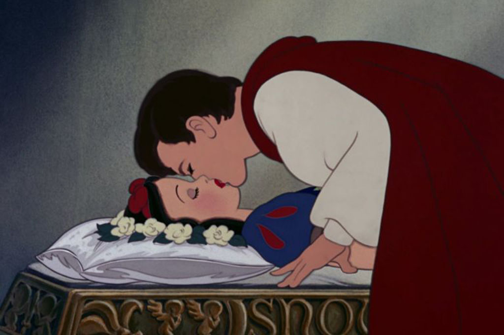 В мультфильме «Белоснежка и семь гномов» и вовсе всё сложно — принц целует девушку, пока она лежит в гробу, то есть он уверен, что она мертва. Это уже совсем не здорово.
