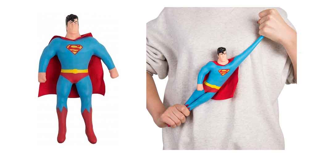 Итак, перед нами Супермен и он тянется, как это работает? Игрушка создана из высокопрочного материала, а внутри у неё безопасный гелевый наполнитель. Можно проверять свою силу, выносливость, проявлять фантазию, как будет угодно. И заодно, конечно, тестировать самого Супермена: настолько ли он супер, насколько кажется? Попробуйте растянуть игрушку вместе и вы удивитесь тому, как быстро Супермен возвращает свою форму!