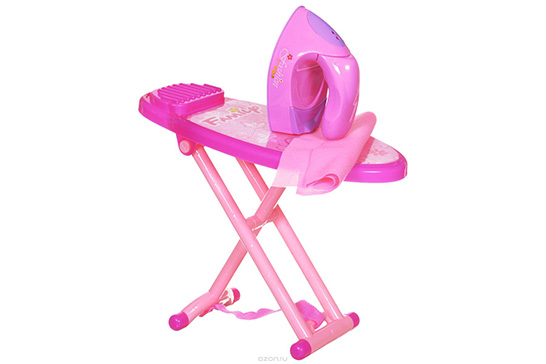 Маленькой хозяйке всегда надо выглядеть опрятно, а значит, вся одежда должна быть выстирана и выглажена. И поможет потренироваться в этом набор с гладильной доской и маленьким утюжком. В комплекте есть два кусочка ткани, на которых девочка может попробовать себя в этом новом деле. После такой игрушки переходить к настоящей глажке будет уже не так сложно. Главное — объяснить технику безопасности.