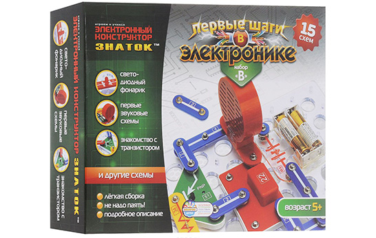 Разбираться в том, что такое электричество, стоит начинать с детства. Тогда потом не будет вопросов «как поменять розетку» или «что такое заземление». В этом комплекте детям предлагается собрать светодиодный фонарик и звуковые схемы, познакомиться с работой транзистора и так далее. Всего 15 наглядных примеров простейших электронных устройств. Первые уроки физики могут быть очень интересными, а также полезными в будущей взрослой жизни.