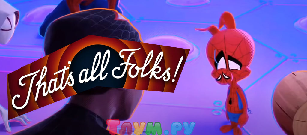 Когда команда пауков начинает возвращаться в свои измерения, Питер Поркер произносит «Ну вот и всё, ребятки», в оригинале «That’s all folks». Знаете, откуда это? Из шоу «Looney Tunes» (которое тоже ребутнули, герои и в новом «Космическом джеме» появятся). Один из пауков спрашивает о «наличии прав» на фразу, и мы полагаем, что Sony вряд ли так заморочились. Почти что незаконная отсылка!
