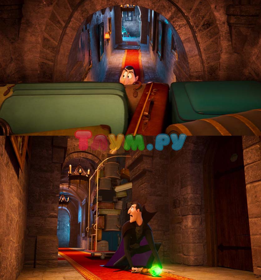 Дракуле сильно мешает быстро добраться до Джонни тележка с чемоданами и вроде как люстра. Однако люстра сначала отсутствует, а потом появляется. Себе на уме.
