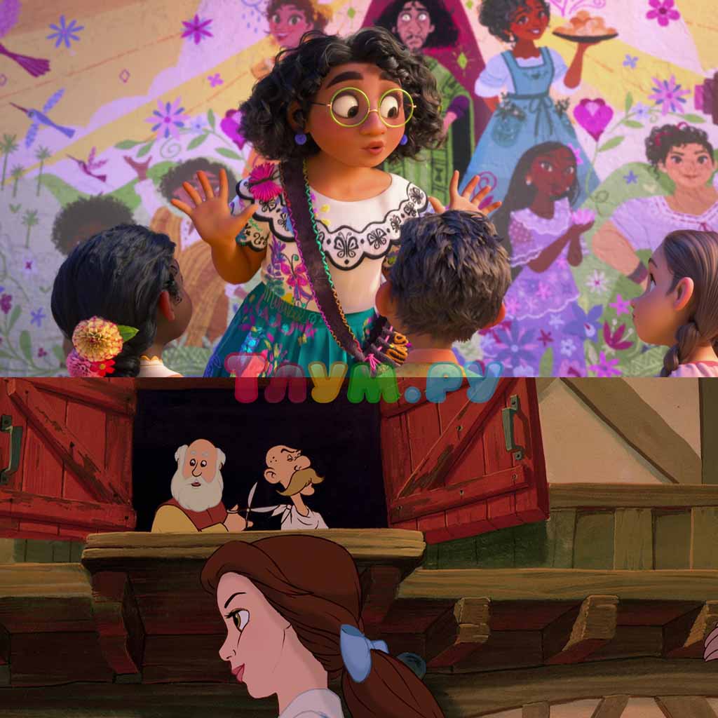 Вдохновляться чем-то давно знакомым могут и творцы студии Disney. К примеру, сцена представления семейства и сути места, где они живут, напоминает «Красавицу и чудовище» — там тоже использовали подобное раскрытие основных персонажей.