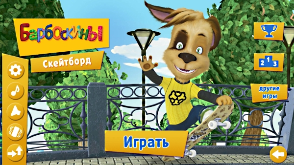 Ребятам предстоит помочь Дружку из мультфильма «Барбоскины» заработать как можно больше очков, катаясь на скейте. Его ждут бонусы, звездочки и кубки, препятствия и возможность выполнить разнообразные трюки. Так что всем гарантирована проверка реакции.