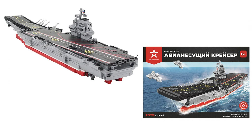 В нём, кроме самого крейсера, есть 4 мини-копии самолёта и 1 мини-копия вертолёта, и даже два бункера, куда при помощи лифтов удастся отправить технику на хранение. Знаете, что в нём самое классное? Конструктор этот LEGO-совместимый.