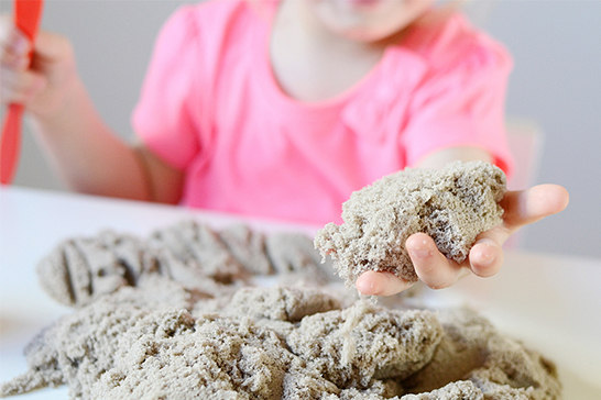 Сделать из простого песка кинетический не так сложно. Совершенно не обязательно его покупать. Сделайте его сами, и пусть малыш таскает его с собой куда угодно, мусора от него не будет, а радости — масса.