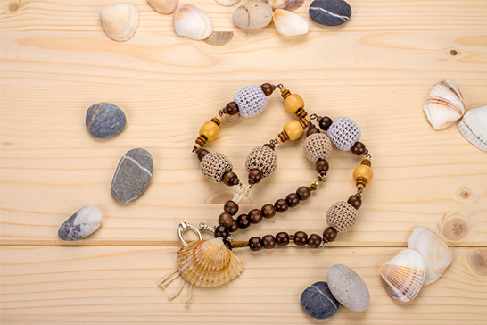 Самое простое — проделать в ракушке дырочку и повесить на шнурке на шею. А если закрепить на нитке несколько ракушек вперемешку с бусинами — будет уже ожерелье. И браслет сделать тоже довольно легко. А если вы заранее позаботитесь о том, чтобы взять клей, дарами моря можно будет украсить все, что вы пожелаете — заколки, колечки, одежду, туфли, сумку и так далее.
