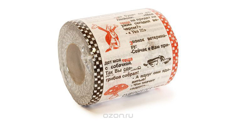 - Тем, кто планирует пригласить в эти дни друзей домой, стоит обратить внимание на особые рулоны с приколами. Анекдоты, выдержки из газет и просто напечатанные изображения 5000-ых купюр развлекут ваших посетителей наилучшим образом. Внимание! Количество анекдотов на один рулон достаточно маленькое, меньше десятка. Они повторяются, чтобы каждый пришедший не смог пропустить нечто крайне важное.