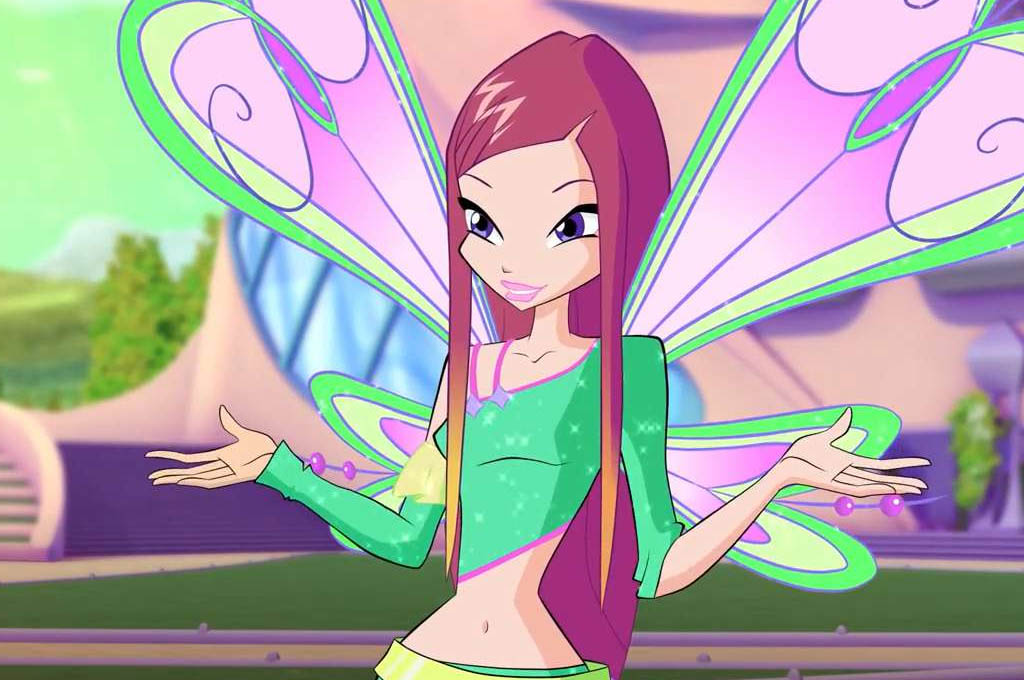 Рокси — очаровательная героиня с тёмно-фиолетовой гривой. У этой феи животных длинные лиловые локоны, часто украшенные цветочными аксессуарами, которые красноречиво говорят о её близости к природе. Волосы Рокси — не просто модный тренд. Они символизируют её волшебные силы и отличие от других людей Земли.