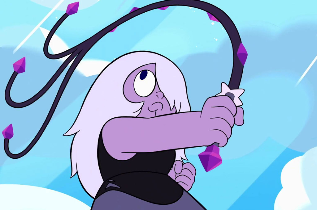 Аметист вполне оправдывает своё имя — она фиолетовая. Полностью, от корней волос до кончиков пальцев. И характер у Аметист соответствующий: она весёлая, непосредственная, немного наивная и ужасно шумная. Эта героиня во всех смыслах необыкновенная, а фиолетовый цвет волос делает её ещё более уникальной.