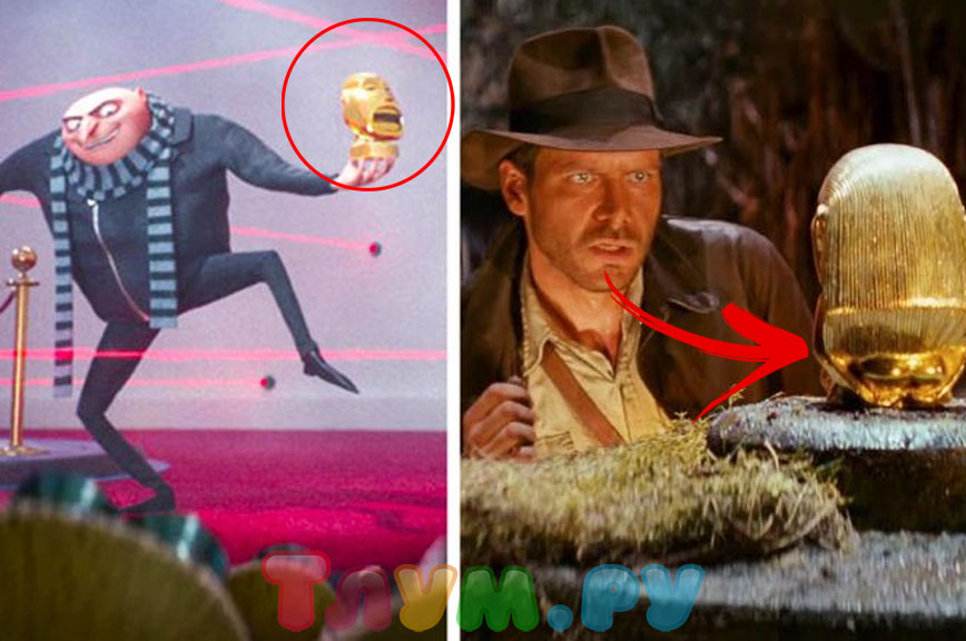 Грю из «Гадкого я» воровал самые разные вещи — однажды ему и его миньонам удалось стянуть даже Луну с неба. В третьей части главный герой умудрился стащить идола из фильма «Индиана Джонс: В поисках утраченного ковчега».