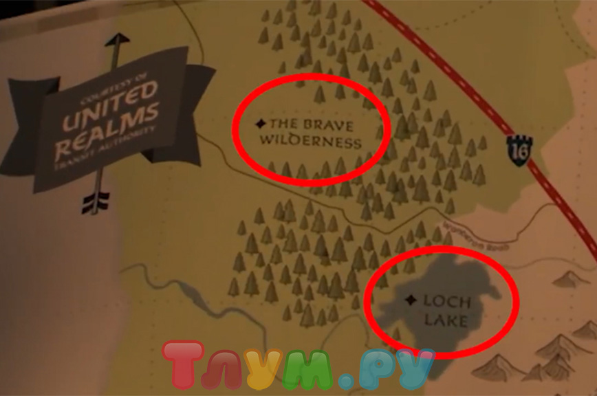 В мультфильме «Вперёд» двое эльфов-братьев отправляются в головокружительное путешествие в поисках волшебства и ответов на свои вопросы. Конечно, они используют карту мира, в котором живут — и там можно обнаружить несколько любопытных локаций, например, место под названием Brave Wilderness (отсылка к мультфильму «Храбрая сердцем», который в оригинале зовётся просто «Brave») и Loch Lake (в шотландском языке слово Loch означает «озеро», так что дословно название можно перевести как «Озеро Озеро»). Неужели там и Мериду можно встретить?