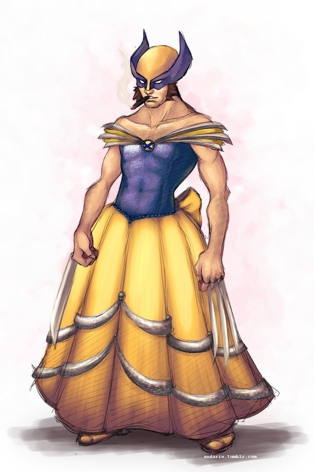 Обычно художники рисуют, как диснеевские принцессы превращаются в кого-то: то в героинь фильмов ужасов, то в динозавров. Сегодня, наоборот, кто-то стал принцессами мультиков Disney. И этот кто-то — герой комиксов Marvel Росомаха. Брутальный мутант с когтями благодаря сразу нескольким художникам примерил образ Белоснежки, Белль и других принцесс.