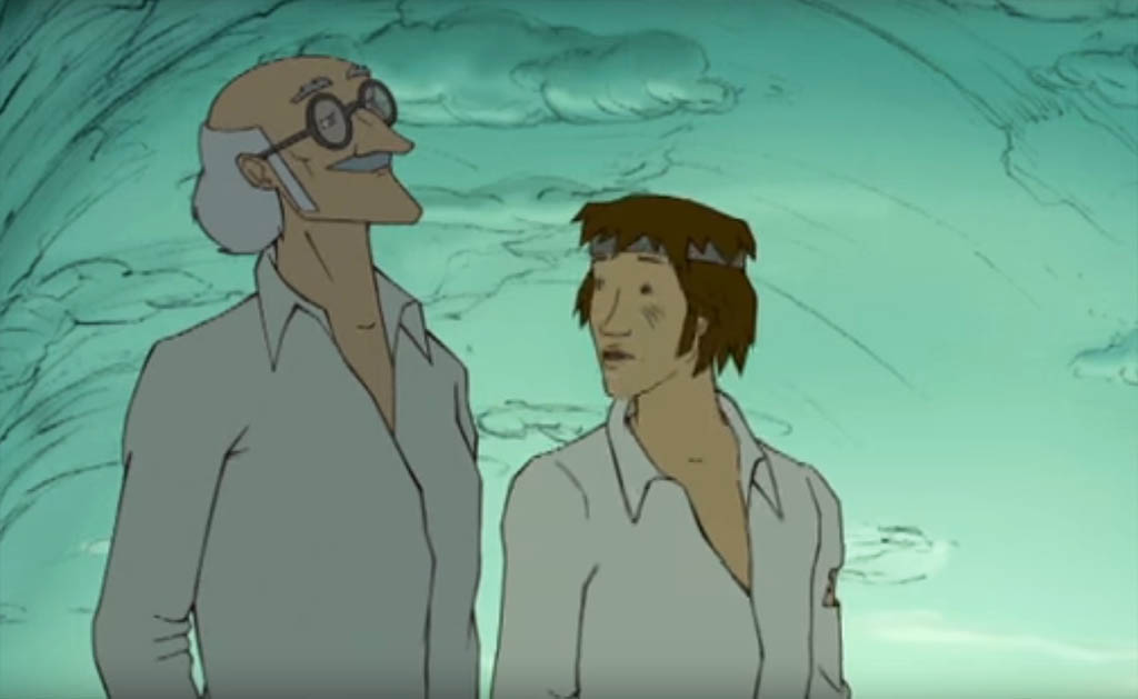 Конечно, мы понимаем, что это не совсем мультфильм, а философский разговор со знаменитым лингвистом Наомом Чомски (Хомским). Но это настолько красиво, психоделично и атмосферно нарисовано, да еще и с таким странным названием, что пройти мимо решительно не получалось.