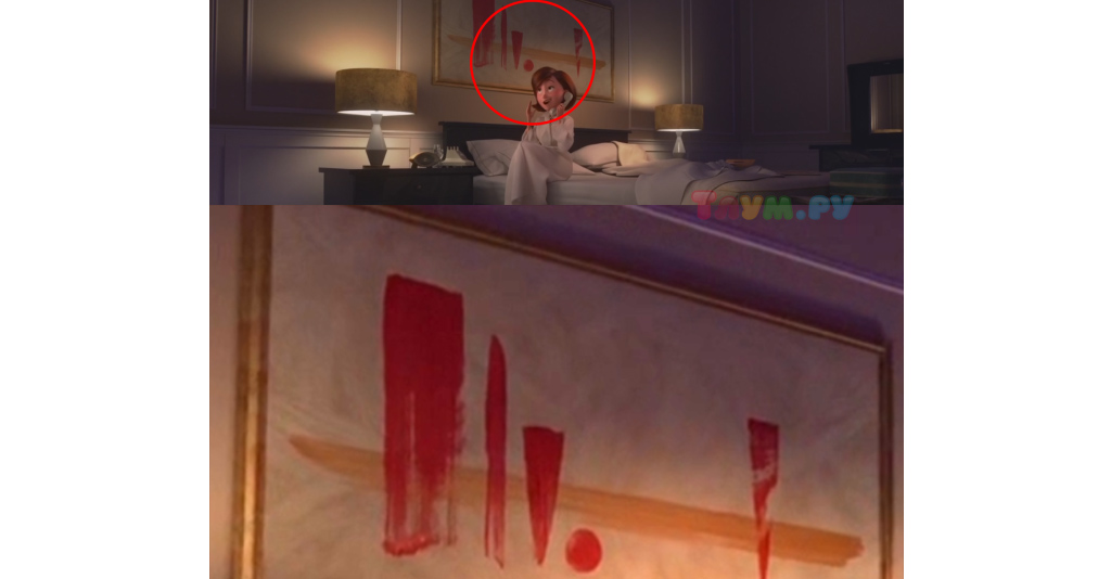 В сцене из «Суперсемейки 2», где Хелен разлучается со своей семьёй, чтобы продолжить карьеру супергероини, можно заметить необычную картину над кроватью в её гостиничном номере. На полотне нарисованы четыре геометрические фигуры вместе (и вполне узнаваемо!) и одна в отдалении. Это очень буквальный символ того, что Эластика находится вдали от сплочённой семьи.