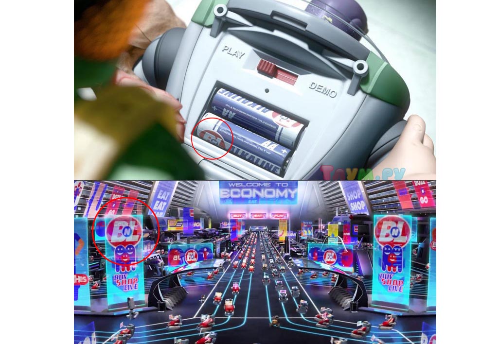 В одном из мультфильмов серии «История Игрушек» можно увидеть, как Базза Лайтера разбирают. На одной из батареек, которые позволяют ему функционировать, видна надпись «BnL» — это название корпорации (Buy'n'Large) из мультфильма «ВАЛЛ-И», которая увезла человечество в космос, пока роботы очищают Землю от загрязнений. Это ещё одно подтверждение теории глобальной связи мультфильмов Pixar.