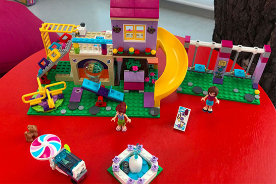 Шиена создала конструктор — детскую площадку, где есть горка, стена для скалолазания, карусель и фонтан. В наборе есть мини-фигурка самой Шиены и собачки Пиппы. Девочка сказала, что ей нравится работать с LEGO, потому что не нужно создавать чертежи на бездушном компьютере, а нужно совмещать реальные предметы, которые можно подержать в руках, и вовсе не обязательно следовать инструкции.