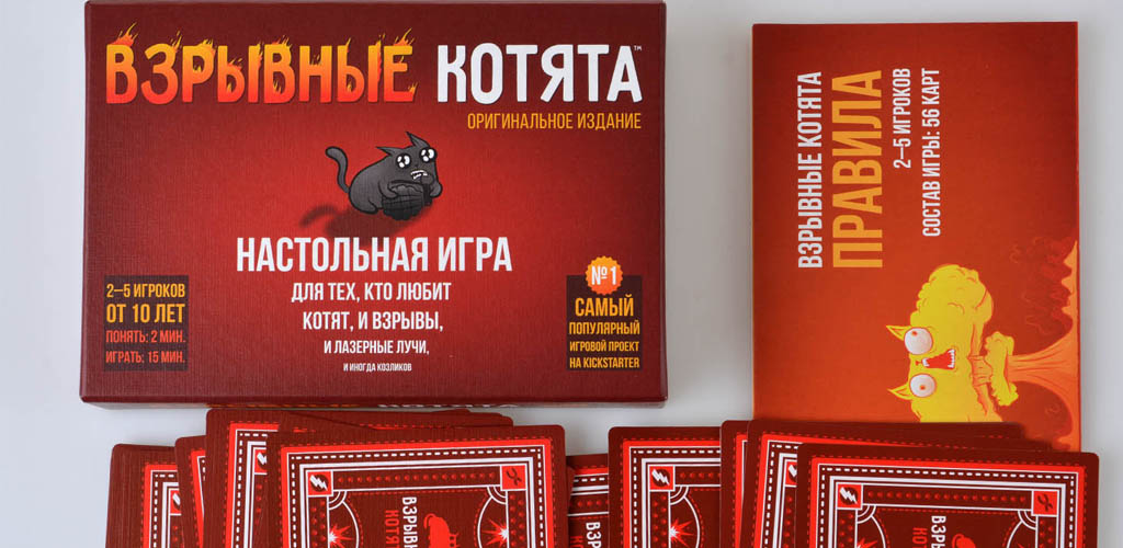 Это отличная игра для тех, кому хочется повеселиться и проверить внимательность. Удивительное свойство «Взрывных котят» — время в их компании летит незаметно, только и успевайте, что осторожно просчитывать ходы и не путать значения карт.