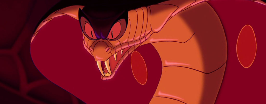 Особые приметы: огромная чёрно-оранжевая кобра, ни с кем другим не спутаете. И пусть превращение антагониста из человека было временным, зато оказалось эффектным и запоминающимся. Особенно для тех, кто змей не сильно жалует. Яркая расцветка, пугающее количество клыков и желание надкусить как минимум одного человека… Хорошо, что Аладдин вышел из схватки победителем.