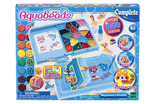 «Студия новичка». Название говорит само за себя, начни знакомство с Aquabeads с этим набором! В него входит множество эскизов для создания различных фигур, ручка, бутылочка-распылитель для воды, поднос, палитра, гребешок и более 840 бусин! Поверьте, этого хватит для того, чтобы научиться делать игрушки и перейти к следующему уровню сложности.