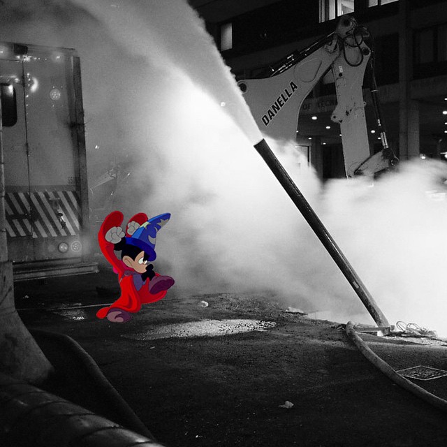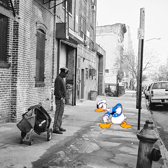 Фотограф Гарри МакНэлли понял, как подарить своим работам новую жизнь — он добавил в них персонажей мультфильмов. Яркие разноцветные персонажи придали черно-белым снимкам особую изюминку.