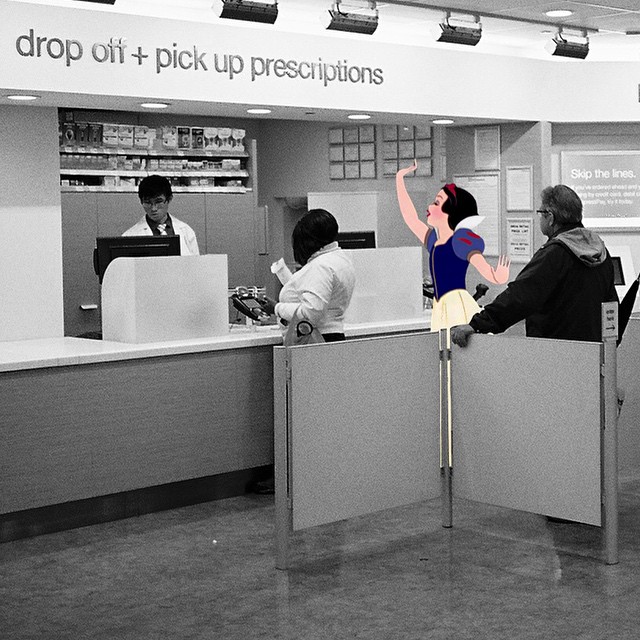 Яркие персонажи любимых мультиков попали в черно-белый реальный мир