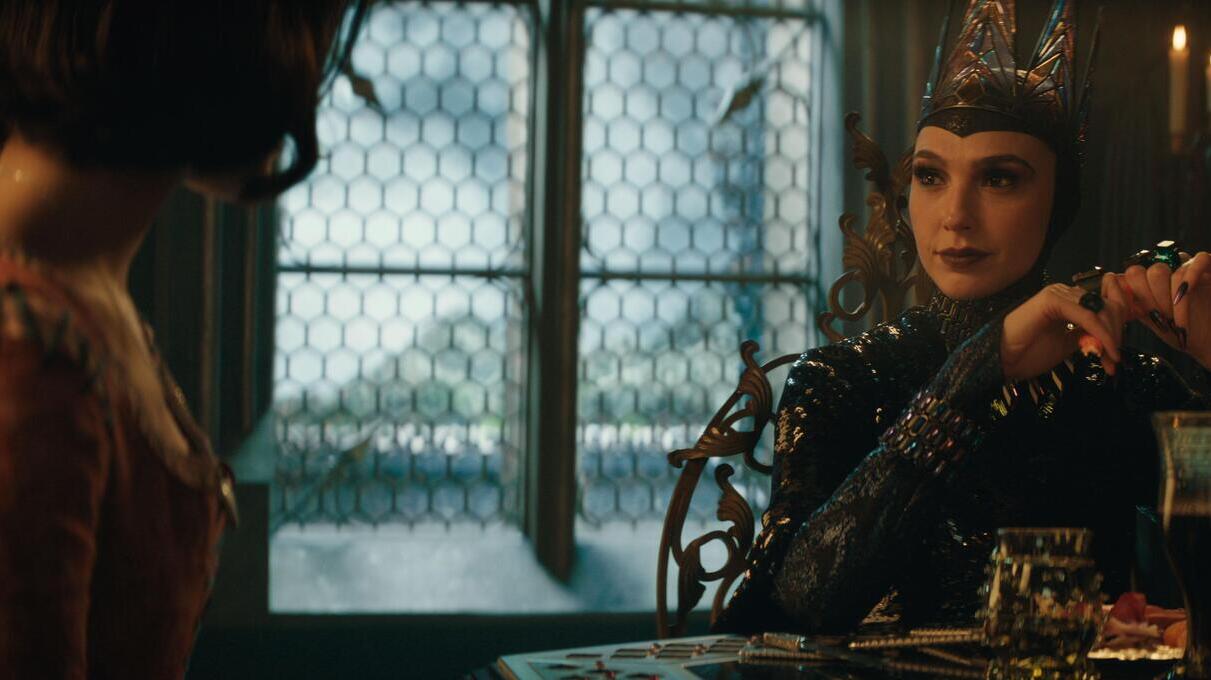 А помните, как старательно мачеха-колдунья скрывала свои намерения в адрес законной наследницы престола в оригинале? Забудьте. Здесь Королева публично отчитывает Охотника за то, что он не убил принцессу, при всём дворе не тая своего желания от неё избавиться (под конец эти речи она повторит и при простых горожанах). А после — посылает на поиски беглянки вооружённые отряды солдат, которых вовсе не смущает такой приказ.