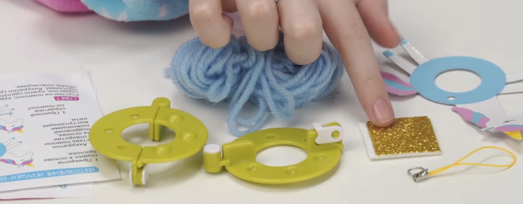 В наборе для создания брелоков есть всё необходимое: и пряжа, и то, на что её нужно наматывать, чтобы получить помпон, и украшения для будущей зверушки. Кого решила сделать Соня, а кого Виталина? Смотрите выпуск и узнавайте. И да, там будет единорог.