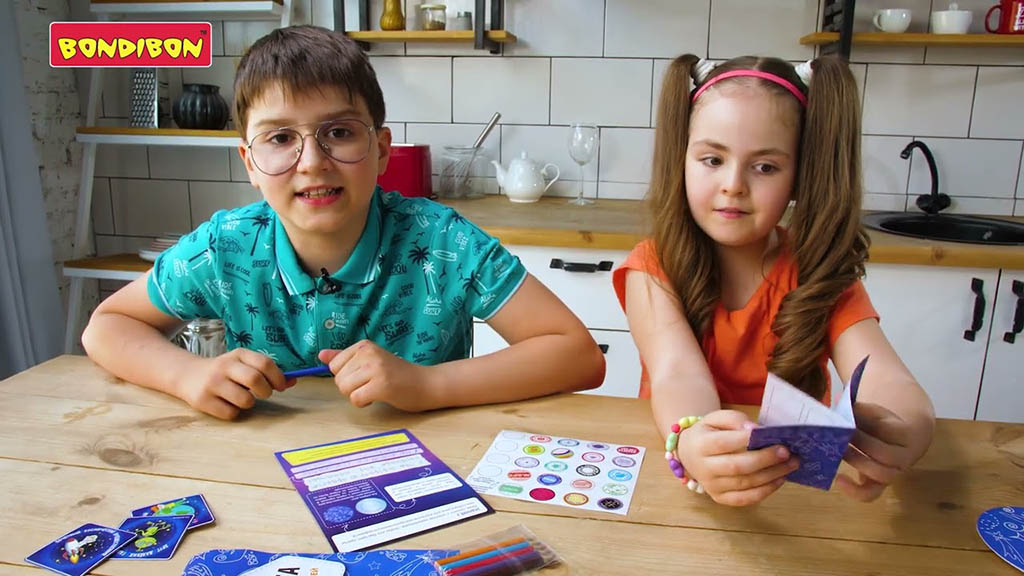 У лучшего друга Саши скоро День Рождения, подарок ещё не выбран. У него есть всё, так что выбор действительно сложный. Ни книга, ни конструктор, ни даже футбольный мяч не подходят. К счастью, у Леры появляется отличная идея — новая игра-квест от «Bondibon Games», в которой можно отправиться на экзопланету пришельцев, выучить их непростой язык и заполнить космический паспорт яркими наклейками.