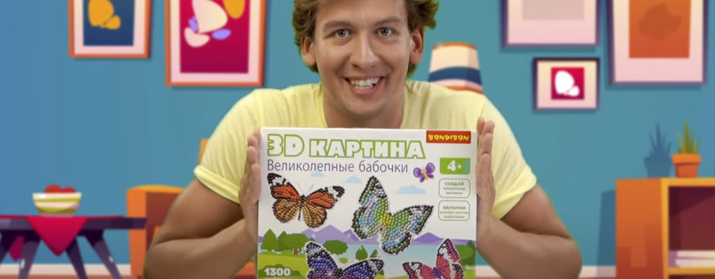 Ведь лучший подарок (ну, один из!) — тот, который сделан своими руками. Для Виталины Вадик собирает целый сет, состоящий из динозавров, а для Сони выбирает набор с яркими бабочками. Всех нужно украсить в яркие цвета и сделать настоящими объёмными картинами.