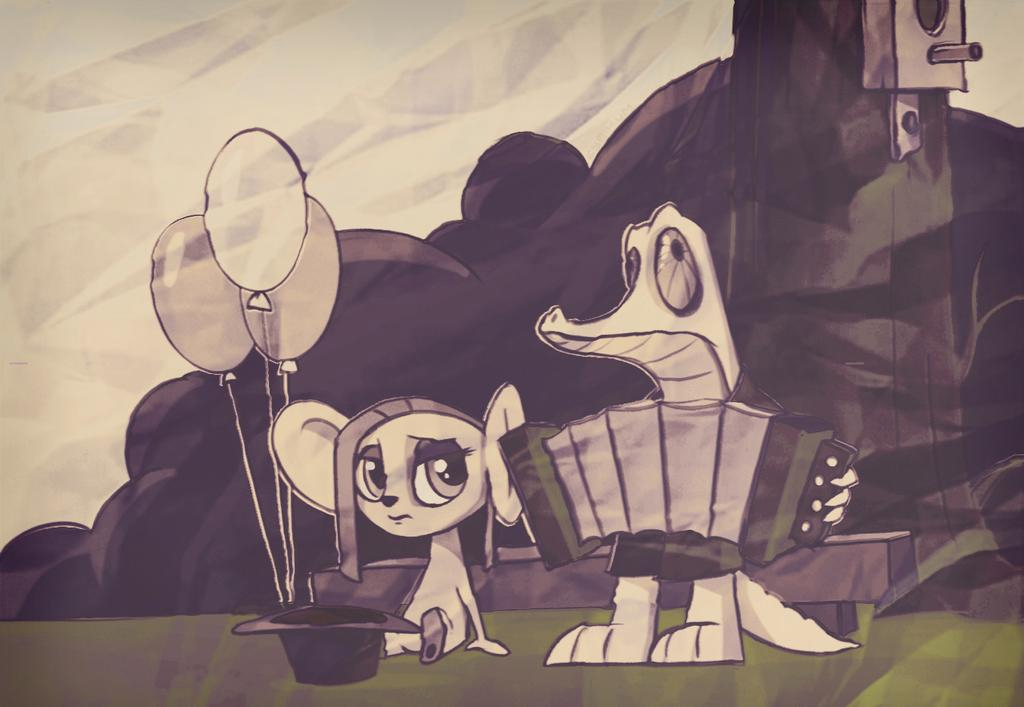 Гена и Чебурашка в особенном стиле художника. Кого вам напоминает такой Гена?