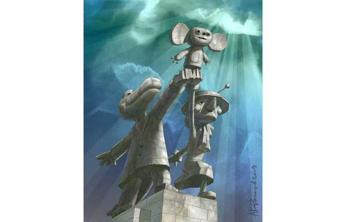 Через тернии… К Чебурашке! Рабочий и Колхозница, но с Геной и Шапокляк.