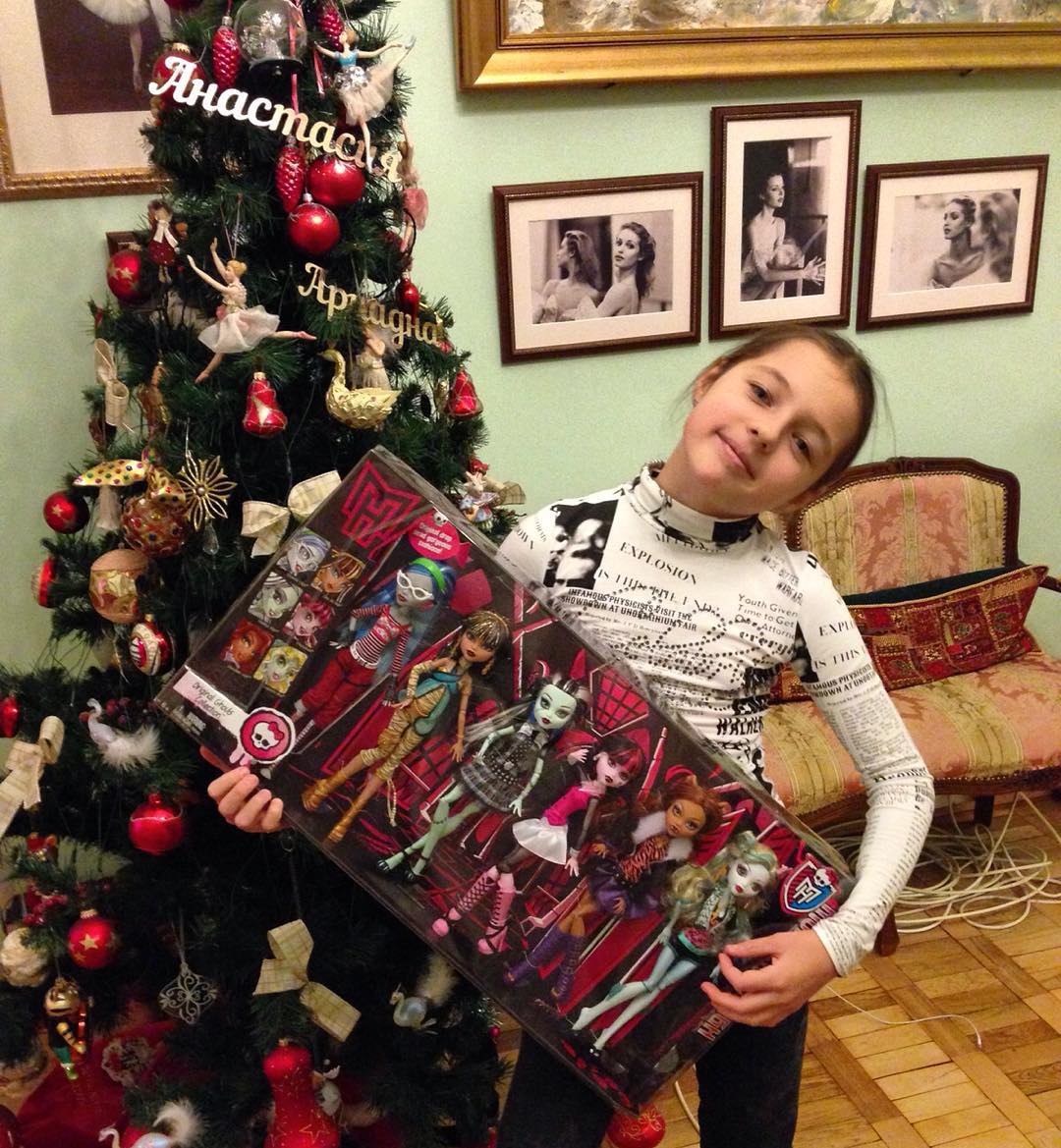 Дочь российской примы-балерины со своим подарком на Новый Год. Вот вы ворчите, а Анастасия явно совсем не против Монстр Хай!